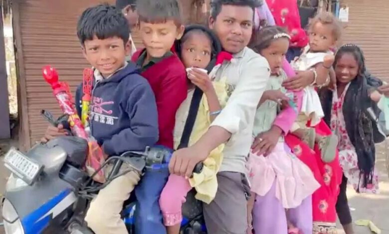 9 सवारियां, 1 बाइक: जान जोखिम में डालकर मौत का सफर, वीडियो देख चकराया पुलिस का माथा