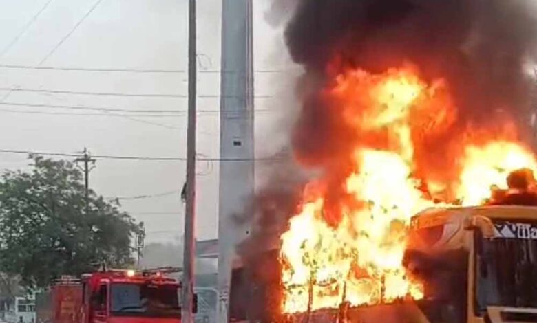 बस जैसे ही झांसी रोड थाना परिसर के सामने पहुंची, अचानक तेज धमाके के साथ बस का पिछला टायर फट गया। टायर फटने से उत्पन्न चिंगारी बस के पिछले हिस्से तक पहुंची, जिससे वहां आग लग गई। कुछ ही क्षणों में बस से धुआं उठने लगा और आग फैलने लगी।