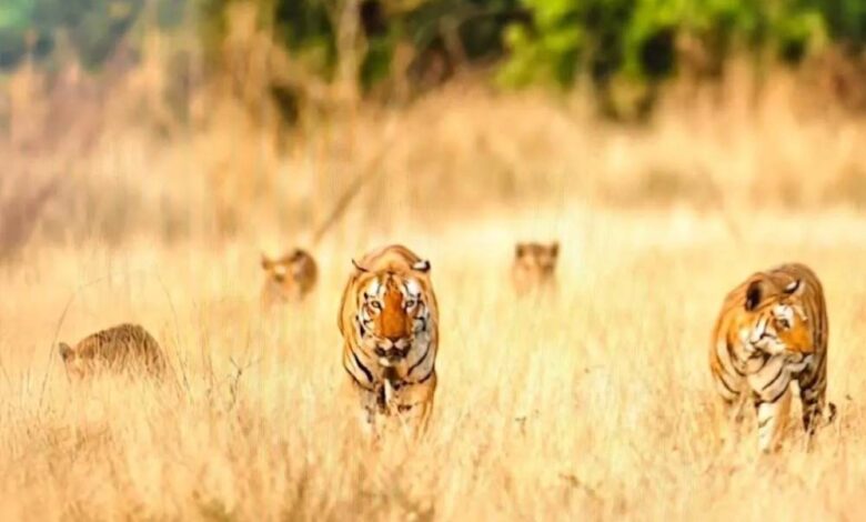 खिवनी अभयारण्य में दुर्लभ दृश्य: सड़क पर दिखा बाघ परिवार, 20 मिनट तक थमी रही टूरिस्ट की सांसें