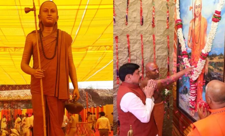 मांधाता पर्वत पर शंकराचार्य की 108 फीट ऊंची मूर्ति