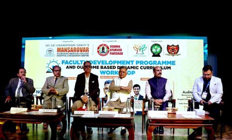 विश्व आयुर्वेद परिषद के कार्यकारी अध्यक्ष डॉ. महेश कुमार व्यास ने कार्यशाला की रूपरेखा प्रस्तुत करते हुए कहा कि सही चिकित्सा तभी संभव है जब चिकित्सकों और प्राध्यापकों को सही निर्देशन मिले। प्रमुख वक्ता के रूप में महाराष्ट्र यूनिवर्सिटी ऑफ हैल्थ साइंस के बोर्ड ऑफ रिसर्च के सदस्य डॉ. किरण टवलारे ने योग्यता एवं उत्कृष्टता के परिप्रेक्ष्य में, मुख्य मानचित्रण प्रस्तुत किया। आईजीपी आयुर्वेद कॉलेज, नागपुर की प्राध्यापक डॉ. कल्पना टवलारे ने खेती और उद्देश्यों की दक्षता पर प्रकाश डाला। मानसरोवर आयुर्वेदिक मेडिकल कॉलेज के प्राचार्य डॉ. अनुराग सिंह राजपूत ने स्वागत भाषण प्रस्तुत किया। मानसरोवर समूह के आयुर्वेद संचालक डॉ. बाबुल ताम्रकार ने सभी का आभार व्यक्त किया। यह एकदिवसीय कार्यशाला; श्री साईं ग्रामोत्थान समिति, मानसरोवर समूह के मानसरोवर आयुर्वेदिक मेडिकल कॉलेज, हॉस्पिटल एवं रिसर्च सेंटर, श्री साईं इंस्टीट्यूट ऑफ आयुर्वेदिक रिसर्च एंड मेडिसिन और विश्व आयुर्वेद परिषद् के संयुक्त तत्वावधान में आयोजित की गई है।
