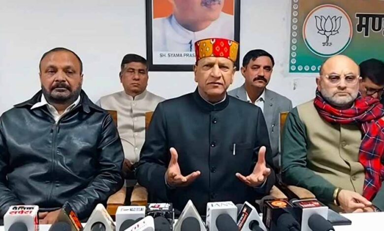 भारतीय जनता पार्टी के प्रदेश अध्यक्ष डॉ. राजीव बिंदल ने एक प्रेस वार्ता को संबोधित करते हुए कहा कि प्रदेश की कांग्रेस सरकार के 3 वर्ष 11 दिसंबर को पूर्ण हो रहे हैं और मीडिया के माध्यम से यह जानकारी मिली है कि कांग्रेस पार्टी इस अवसर पर मंडी में जश्न मनाने की तैयारी कर रही है। डॉ. बिंदल ने कहा कि वास्तव में यह तीन साल “जश्न” के नहीं, बल्कि व्यवस्था पतन के तीन साल हैं। इन तीन वर्षों में हिमाचल प्रदेश की संपूर्ण व्यवस्थाएं तार-तार हो चुकी हैं। उन्होंने कहा कि यह कानून व्यवस्था के पतन के तीन साल हैं, जहां आए दिन लूट, चोरी, फिरौती, डकैती और गोलीकांड की घटनाएं आम हो गई हैं। ऊना के लोग इसके प्रत्यक्ष गवाह हैं, लेकिन यह समस्या केवल ऊना तक सीमित नहीं रही, बल्कि चंबा से सिरमौर और कांगड़ा से किन्नौर तक गोलीकांड और अपराध की घटनाएं आम बात बन गई हैं। यह सरकार कानून व्यवस्था बनाए रखने में पूरी तरह विफल रही है। डॉ. बिंदल ने कहा कि यह भारी कर्ज के तीन साल हैं। प्रदेश सरकार ने भारीभरकम कर्ज तो लिया, लेकिन उस कर्ज को जनता के हित में लगाने में पूरी तरह असफल रही। यह सरकार बेरोजगारों के साथ किए गए भद्दे मजाक के तीन साल साबित हुई है। उन्होंने कहा कि नौकरियां देने के वादे तो किए गए, लेकिन डेढ़ लाख से अधिक सरकारी पदों को समाप्त कर दिया गया। यह बेरोजगार युवाओं के साथ घोर अन्याय है।