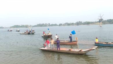 नर्मदा नदी में विशाल नाव रैली, बीच नदी में मेधा पाटकर ने उठाई मछुआरों की आवाज