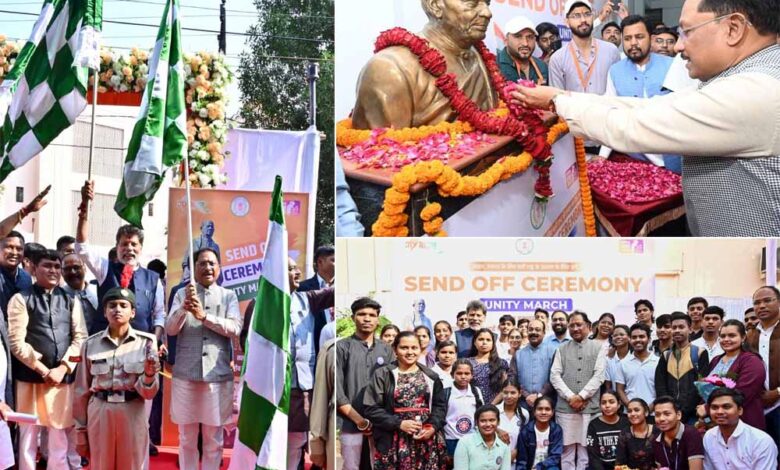 मुख्यमंत्री विष्णुदेव साय ने यूनिटी मार्च के लिए राज्य के 68 युवाओं के दल को हरी झंडी दिखाकर किया रवाना