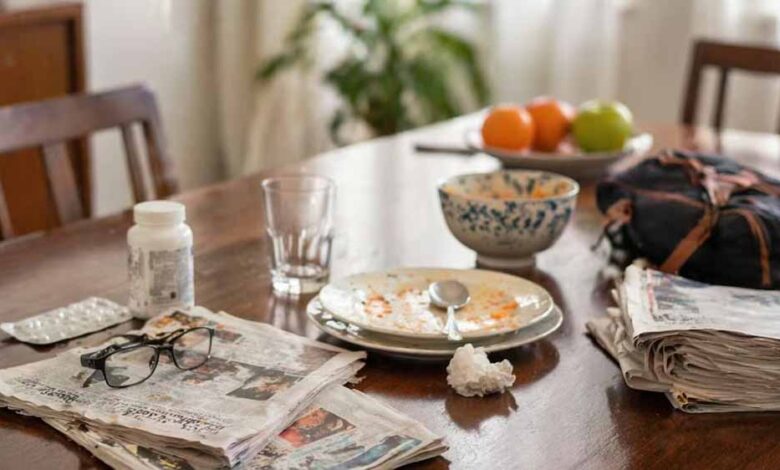 खाना खाने के बाद टेबल पर जूठे बर्तन या बचा हुआ खाना छोड़ना नकारात्मक ऊर्जा को बढ़ाता है. यह आदत धीरे-धीरे घर की आर्थिक स्थिति और मानसिक शांति को प्रभावित कर सकती है. इसलिए हमेशा टेबल को तुरंत साफ करना चाहिए.