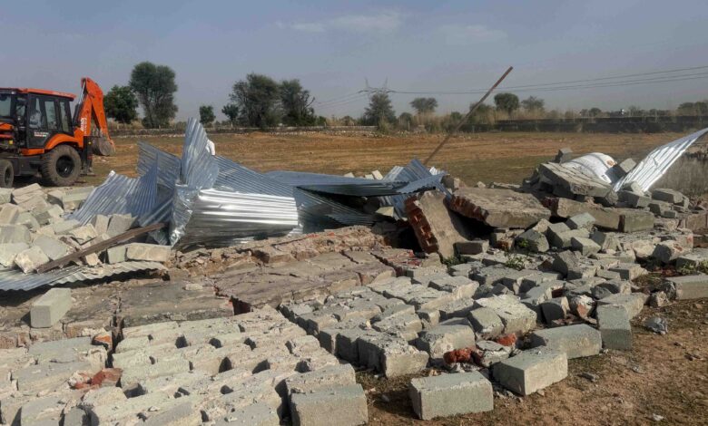 उप महानिरीक्षक पुलिस आनन्द शर्मा ने बताया कि आज (11 अप्रैल 2026) को प्रवर्तन शाखा ने जोन-14, 17 और 01 के इलाकें में कार्रवाई करते हुए तहसील चाकसू के ग्राम जयचंदपुरा में करीब 15 बीघा बेशकीमती सरकारी भूमि पर किए गए अतिक्रमणों को हटाया गया. इन जमीनों पर 10-12 कच्चे-पक्के मकान, बाउण्ड्रीवाल, टीनशेड, कांटों की बाड़, झाड़ियां और तारबंदी कर कब्जा किया गया था. जिसे जेसीबी मशीन व मजदूरों की