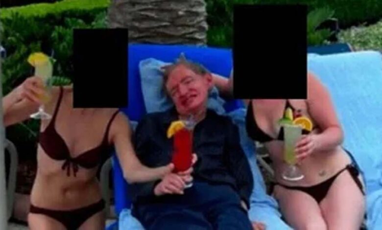 जब से एपस्टीन फाइल जारी हुई हैं, तब से अमेरिका समेत दुनियाभर में हड़कंप मचा हुआ है। कई नामी-गिरामी लोगों के नाम सामने आ चुके हैं। अब स्टीफन हॉकिंग की एक तस्वीर सामने आई है, जिसने हंगामा खड़ा कर दिया है। जेफरी एपस्टीन की फाइलों से सामने आई इस फोटो में स्टीफन हॉकिंग दो बिकिनी पहनी महिलाओं के बीच में हैं। हॉकिंग के बगल में लेटीं दोनों महिलाओं की पहचान उजागर नहीं हुई है। एक महिला हॉकिंग के दाएं ओर है, तो दूसरी बाएं ओर लेटी है। तीनों के हाथों में पेय पदार्थ है और स्टीफन हॉकिंग वाला ग्लास उनके अलावा महिला ने भी पकड़ रखा है। दोनो महिलाओं के चेहरे को काले रंग से ढक दिया गया है, ताकि पहचान सामने न आए। दोनों ने ब्लैक कलर की बिकिनी पहन रखी है।