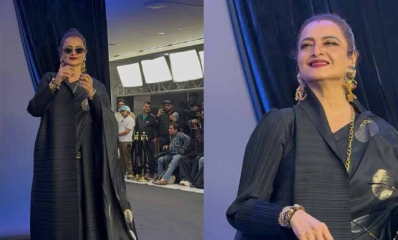 ब्लैक साड़ी में रेखा का आइकॉनिक अंदाज़ वायरल, वेडिंग सीजन में छा सकता है उनका ये लुक
